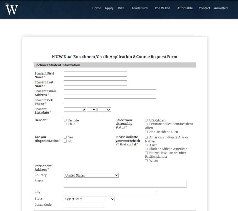Step One: Navigate to the MUW Dual Enrollment Application