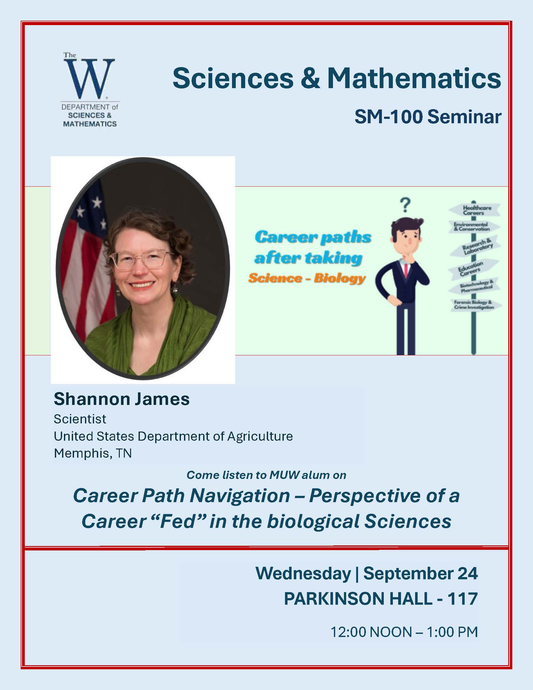 Shannon James graduated from MUW thirty years ago in 1995 with a Cum Laude B.S. in Biology, completed an M.S. in Entomology from University of Tennessee Knoxville, and has built a career in applied regulatory biology spanning more than twenty years. The majority of her career has been with the United States Department of Agriculture, […]