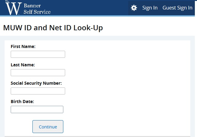 Enter the following information, to retrieve your Net ID: First Name, Last Name, Birth Date, Social Security Number. After you click continue, you will see your Net ID. Remember this Net ID, you will need it in just a moment.