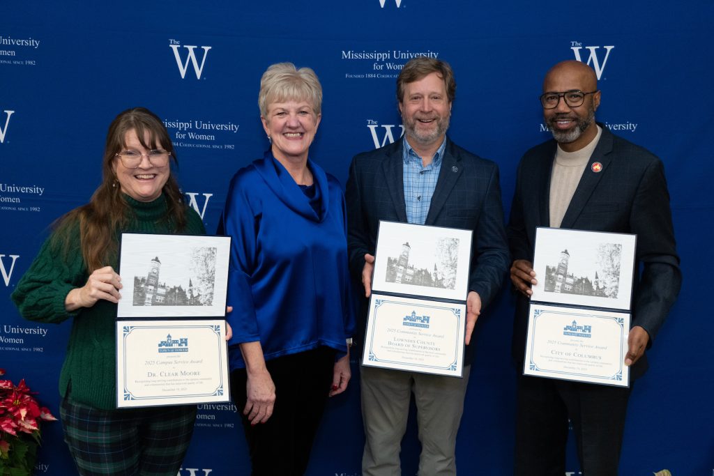 The Town & Tower Club presented annual awards for outstanding service at its holiday luncheon held on Thursday. This year’s recipients were Dr. Clear Moore, Student Success Center director at Mississippi University for Women (Campus Service Award); Trip Hairston, president of the Lowndes County Board of Supervisors (Community Service Award), and Stephen Jones, mayor of the City of Columbus (Community Service Award).