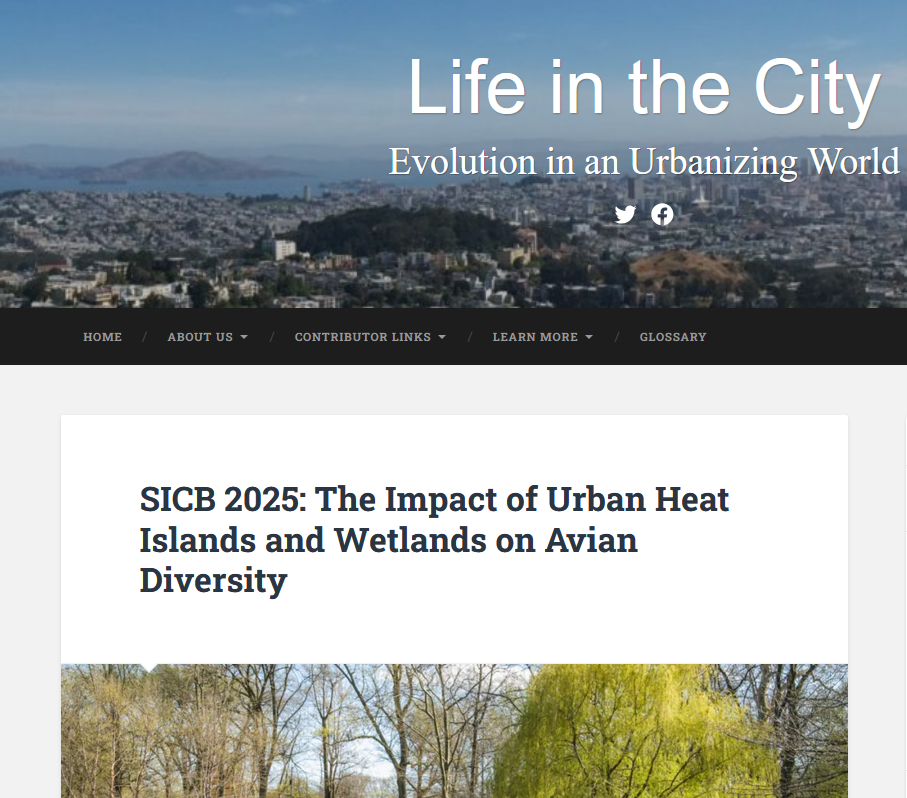 Dr. Hagey also put Zarin in touch with the Life in the City website, who also accepted her offer to report from the conference. Life in the City is a is a blog launched in 2018 by researchers at New York University, Washington University, St. Louis, and the University of Toronto. The site serves as a communication hub for researchers worldwide to share and discuss research on the impacts of urban environments and how species adapt to them.