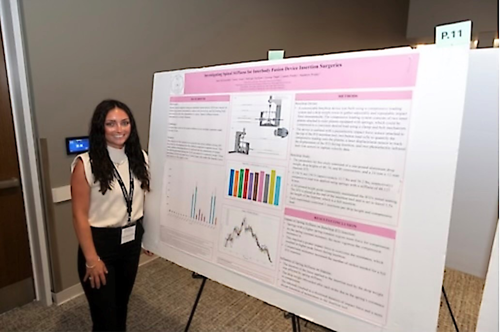 Kate worked over the summer on determining the appropriate spinal stiffness setting in their desktop device that will allow the testing of Interbody Fusion Devices (IFDs) used in spinal surgery.