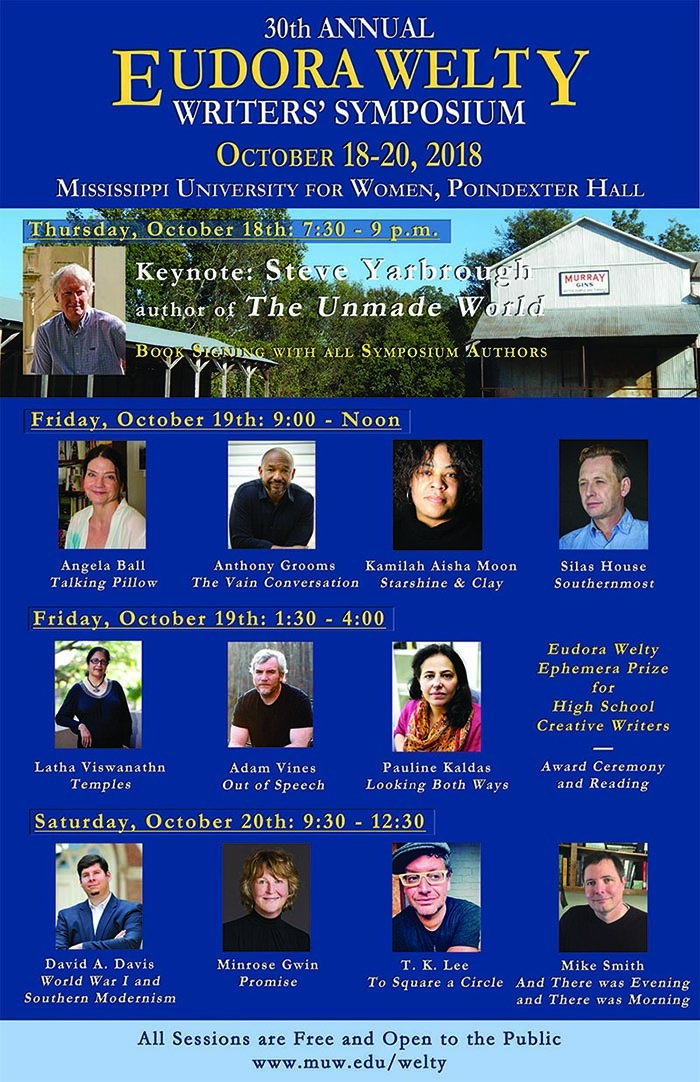 The Eudora Welty Writers' Symposium is held each October in honor of The W's most famous alumna. A diverse group of Southern writers and scholars are invited to present their work. A highlight of the symposium is the announcement of the Eudora Welty Prize for an unpublished book of scholarship.